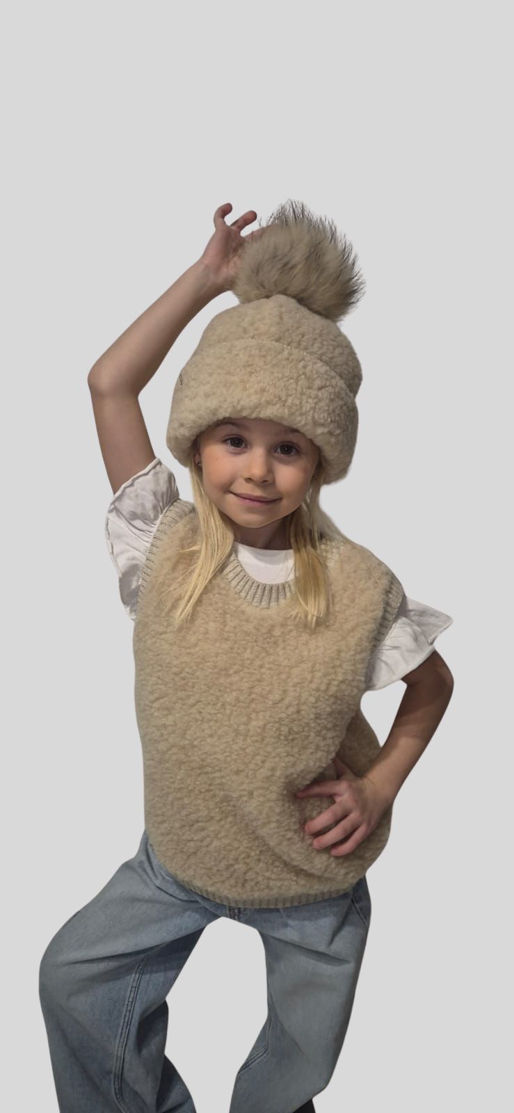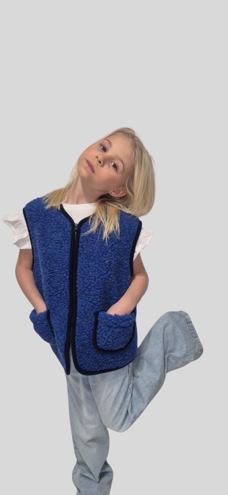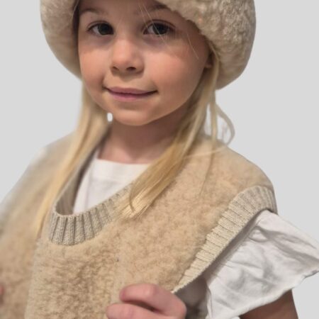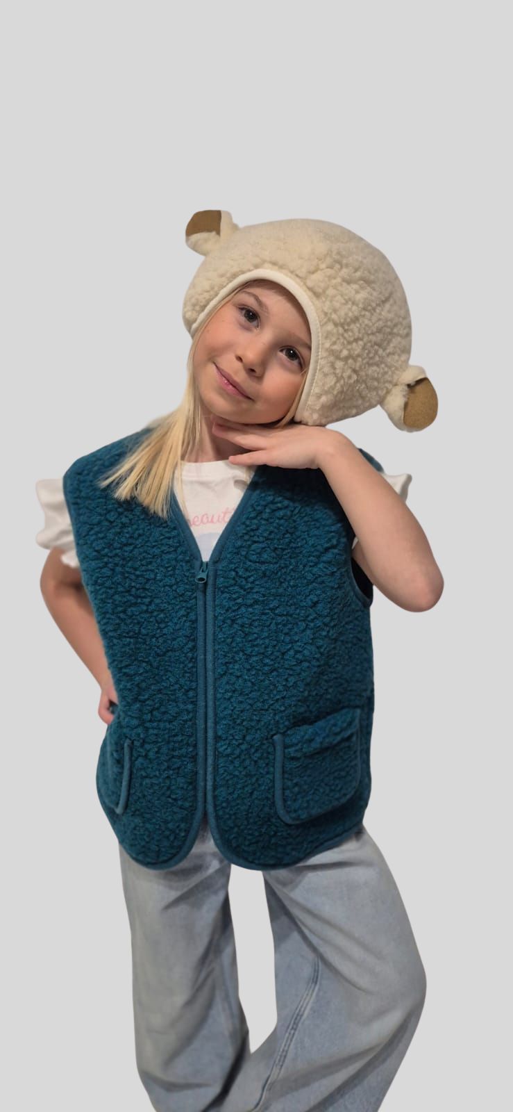 Kamizelka dziecięca Dudu wykonana ze 100%  futerkowej dzianiny wełnianej. Otula dziecko naturalnym ciepłem i miękkością. Oddychająca wełna w runie zapewnia komfort przez cały dzień, a prosty, ponadczasowy fason sprawia, że kamizelka idealnie sprawdza się warstwowo — na spacer, do przedszkola i codzienne przygody. To świadomy wybór blisko natury.